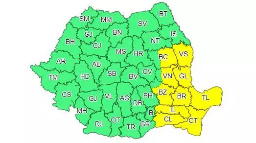 Meteorologii au emis o atenționare cod galben de intensificări ale vântului și scăderi accentuate ale temperaturilor. Atenționarea intră în vigoare de joi noapte, de la ora 23:00 și este valabilă până vineri, la ora 16:00.