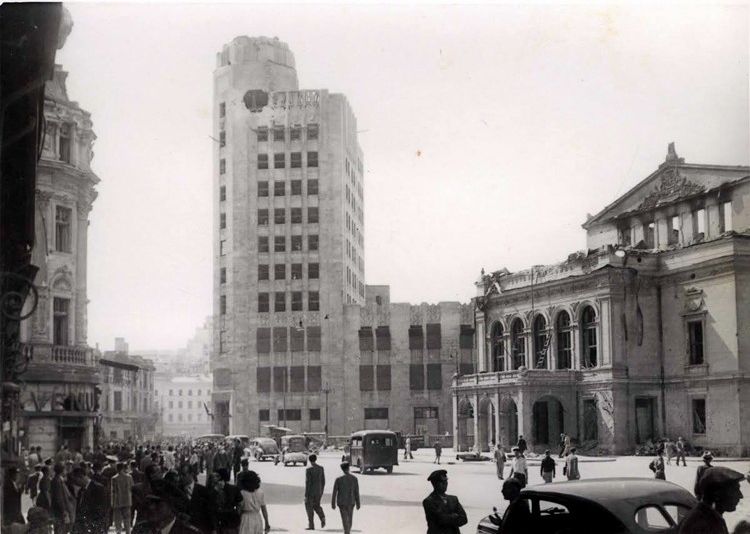 1944 a fost un an cumplit pentru bucuresteni, care au indurat bombardamente si in aprilie (anglo-americanii), si in august (germanii). Fotografia de mai sus reda dezastrul facut de bombardamente in Piata Victoriei.