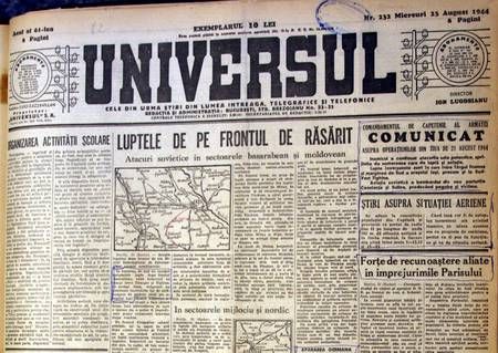 CE SCRIA ZIARUL UNIVERSUL IN PERIOADA DE FOC 23 AUGUST 1944 - 31 AUGUST 1944