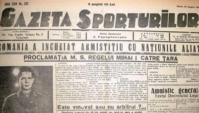 Pentru o mai buna intelegere a situatiei acelor zile, site-ul realitatea.net a decis sa publice si prima pagina din cotidianul sportiv Gazeta Sporturilor, datat 25 august 1944. Biblioteca Centrala Universitara nu detine in arhive ziarul GSP din acea zi, dar jurnalistul realitatea.net Cristian Otopeanu a intrat in posesia lui si il ofera spre lectura mai jos.