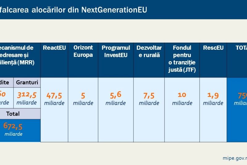 Mai exact, în total, România ar primi 14,248 miliarde sub formă de grant și aproximativ 14,935 miliarde sub formă de împrumuri pentru un total de 29,2 miliarde euro.