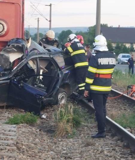 Accident grav în Suceava. Autoturism lovit de tren la o trecere la nivel cu calea ferată fără bariere. Șoferul nu a supraviețuit impactului