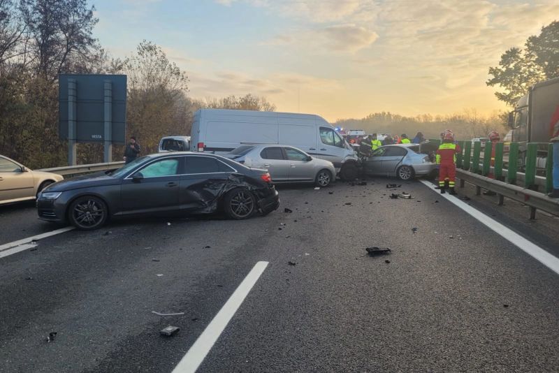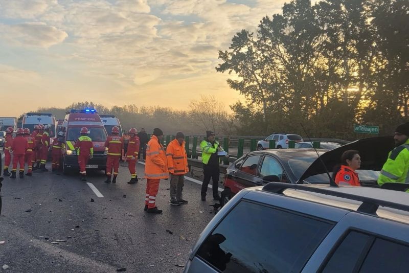 Accident rutier de amploare, joi dimineața, pe autostrada A3, la kilometrul 56, în zona comunei Rafov, din județul Prahova. În accident au fost implicate 12 autoturisme, cu un total de 26 de persoane aflate în acestea.