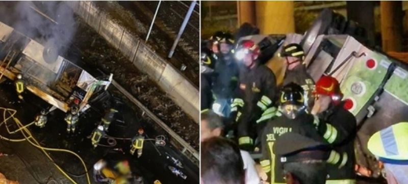 Autobuzul a căzut de la o înălțime de 10 metri și a luat foc la impactul cu solul, informează Il Messaggero. Accidentul s-a produs într-o zonă de pe via dell’Elettricità, autobuzul a ieșit de pe șosea, a distrus parapetul, căzând de la o înălțime de 15 metri și ajungând pe calea ferată, după care a luat foc, scrie Rotalianul. Unele dintre primele victime recuperate se pare că au murit arse. Printre morți se numără și doi copii. Echipele de intervenție depun eforturi contra cronometru pentru a salva alți pasageri, care sunt prinși în partea de mijloc a autobuzului.