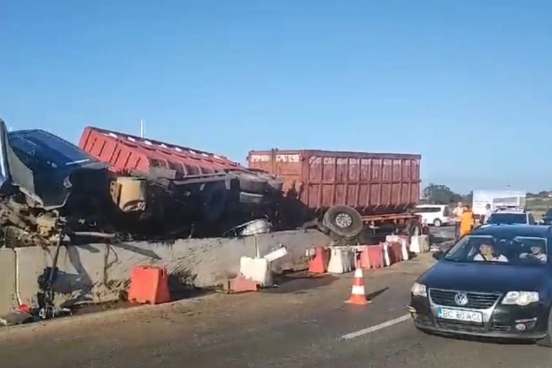 Un accident grav a avut loc vineri dimineața în localitatea Lețcani din Iași. Șoferul unui camion a adormit la volan și a intrat din plin în mai multe mașini aflate în trafic, a spulberat un sens giratoriu.