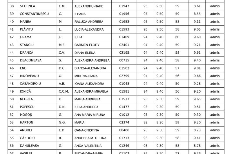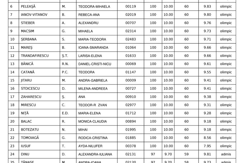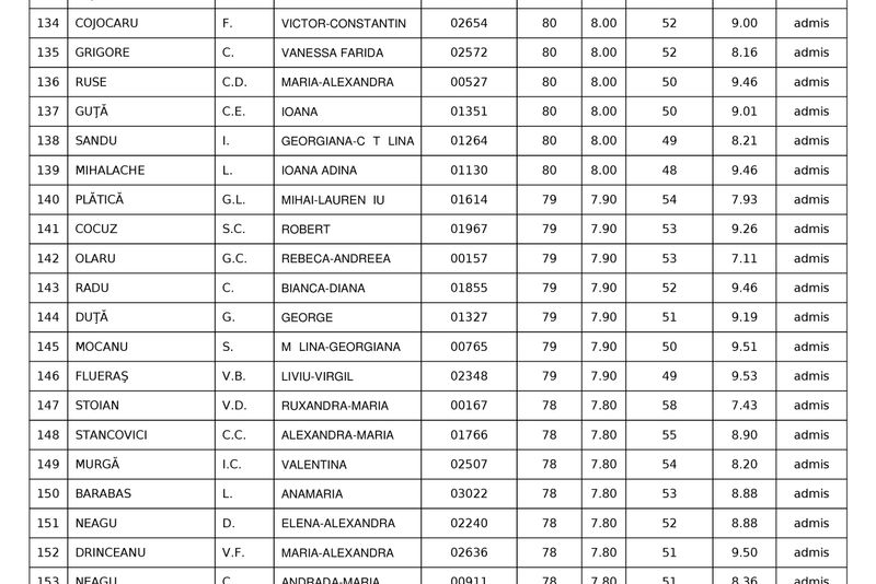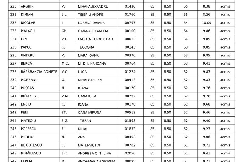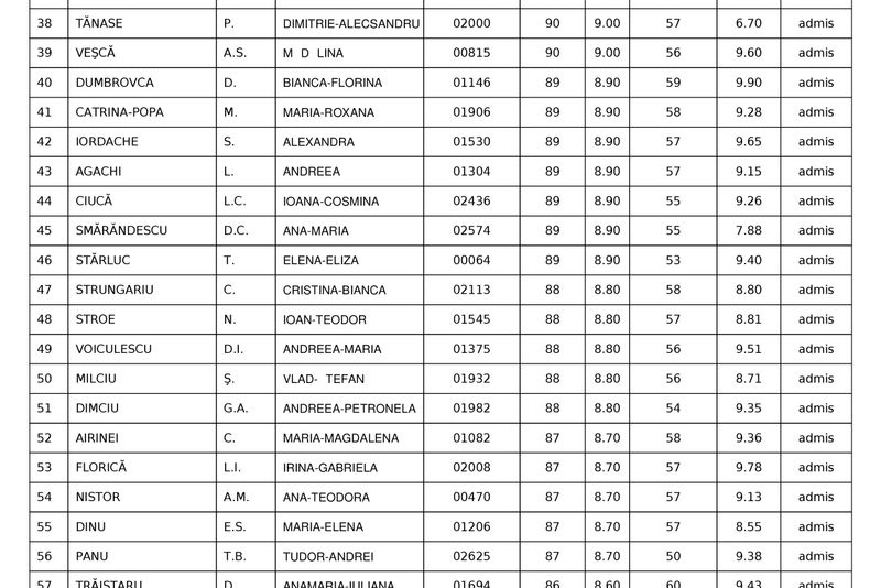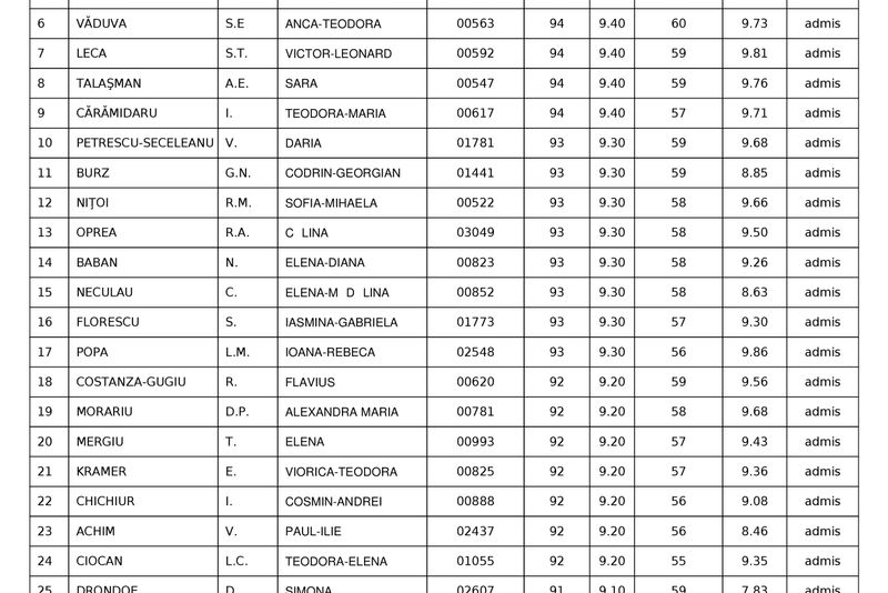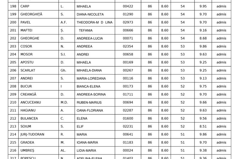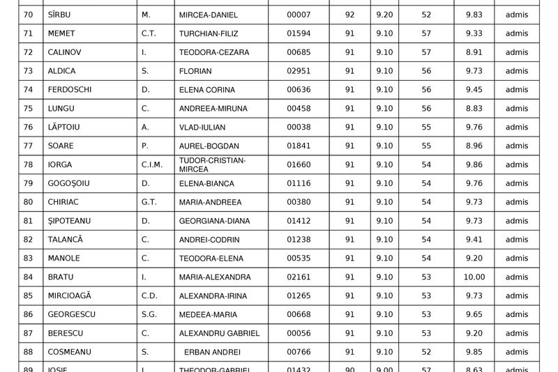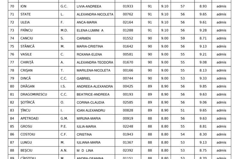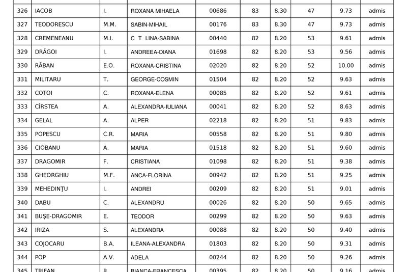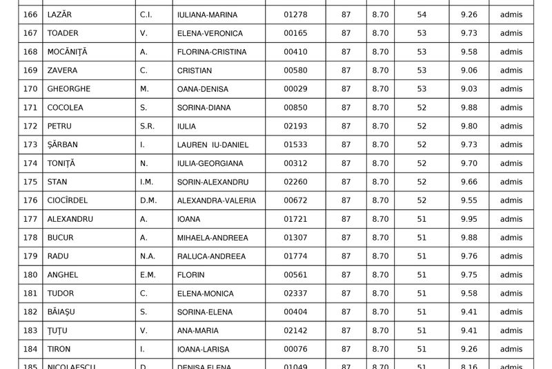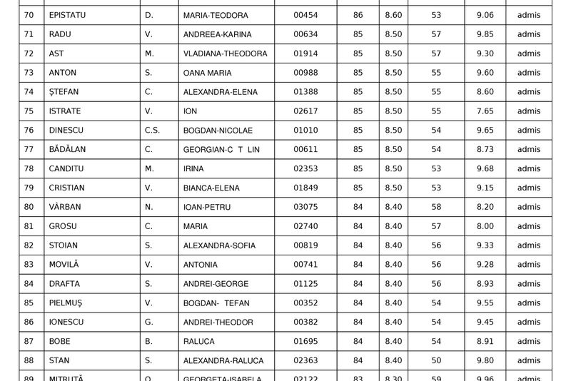 7. Lista candidaţilor admişi se afişează în ordinea descrescătoare a punctajului obţinut și în limita locurilor finanţate de la buget acordate fiecărei facultăţi în parte. Lista candidaţilor respinşi se afişează în ordine alfabetică.