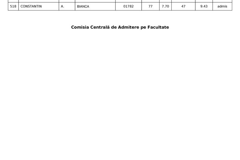 9.Listele definitive (generate după soluționarea contestațiilor) ce cuprind rezultatele definitive și incontestabile ale concursului de admitere vor fi afişate la avizierele facultăţilor după termenul de contestaţii şi rezolvare a acestora.