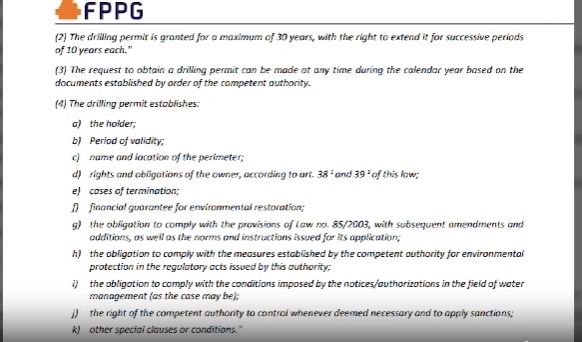 „Documentul în română care însoțește proiectul FPPG are titlu trimis către mai multe societăți: Înființare grup de lucru actualizarea și modernizarea legii minelor. Deci ei au înființat acest grup de lucru. O preocupare prioritară este crearea unui cadru legislativ in domeniul energiei .