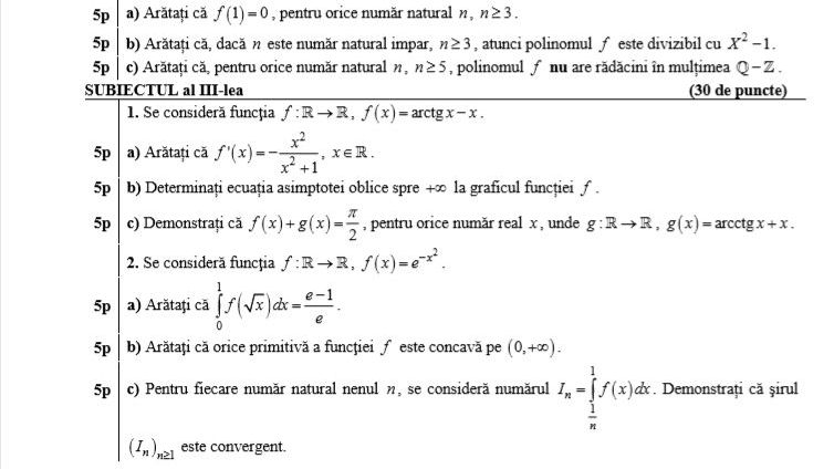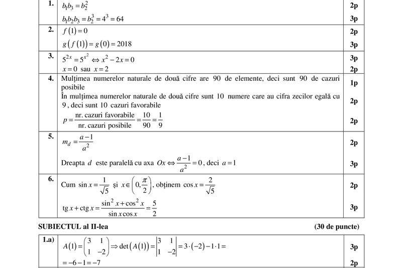 Iată și modelul de subiect apărut pe siteul Ministerului Educației înainte de BAC 2018 la matematică: