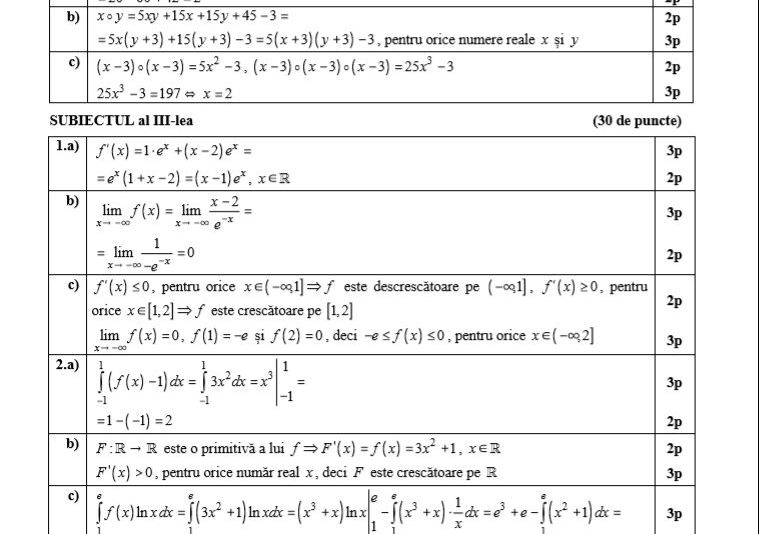UPDATE: Barem matematică Mate-Info, Stiintele Naturii, Tehnologic BAC 2018: