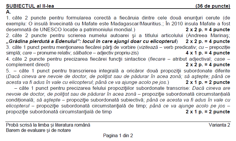 BAREM romana EVALUARE NATIONALA 2016. Rezolvari corecte EDU.RO