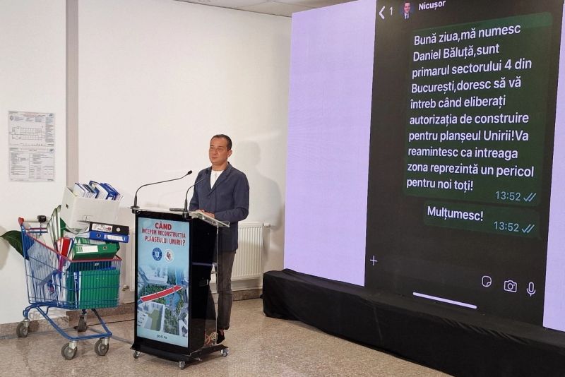 „Așa cum am mai spus, noi suntem pregătiti. Avem finanțare. Avem contractul semnat, toată documentația e pregătită. Toate expertizele, studiile, avizele cerute de Primăria Capitalei sunt aici, în fața dumneavoastră. Fără folos, însă! În lipsa semnăturii Primarului General, stăm pe loc, deși degradarea Planșeului Unirii nu se oprește!”, a mai afirmat Daniel Băluță.”