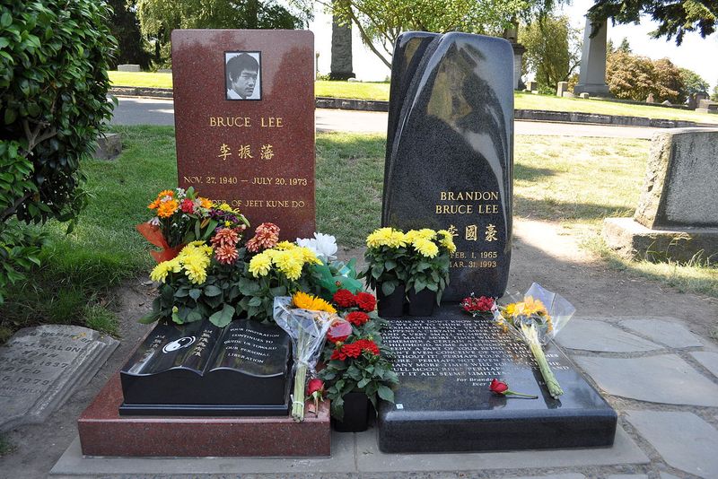 Filmul biografic "Dragon: The Bruce Lee Story" a apărut pe ecrane aproape concomitent cu moartea lui Brandon Lee. În film, eroul principal se luptă cu Dragonul morții, însă deodată personajul fantastic se îndreaptă către fiul lui Bruce Lee. O imagine din film arată și mormântul real al actorului, lângă care a fost înmormântat și fiul.