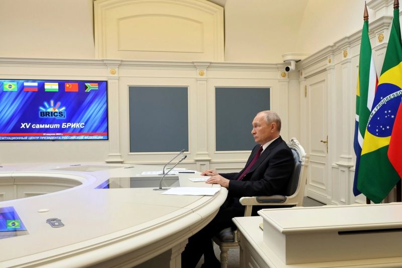 Statele partenere din BRICS nu au condamnat până acum Rusia pentru agresiune şi au devenit mai importante pentru Moscova, care încearcă să atenueze efectele sancţiunilor occidentale prin stimularea comerţului cu Asia, Africa şi America Latină. În discursul transmis la Johannesburg, Putin a cerut o "ordine mondială multipolară", iar Reuters observă că întărirea BRICS face parte din strategia rusă de subminare a dominaţiei americane.