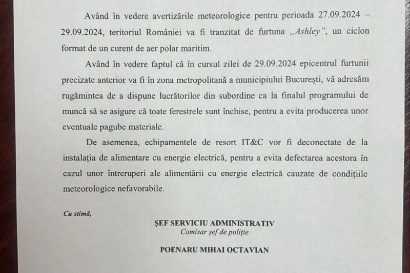 În Bucureşti, ANAR prin Sistemul de Gospodărire a Apelor Bucureşti, împreună cu Apa Nova vor acţiona coordonat pentru preluarea şi tranzitarea apelor pluviale şi, după caz, vor interveni cu manevre la stăvilarele de pe Dâmboviţa”, a mai transmis Ministerul Mediului, la finalul sedinței Comitetului pentru situații de urgență.