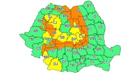 Administrația Națională de Meteorologie a actualizat, astăzi, codurile portocalii și galbene de vreme severă. În sudul țării, vremea rămâne în continuare deosebit de caldă.