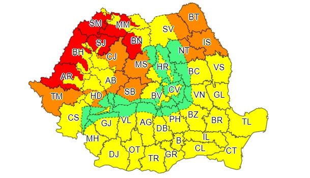 Zone afectate: județele Arad, Bihor, Satu Mare, Sălaj, Maramureș și Bistrița-Năsăud