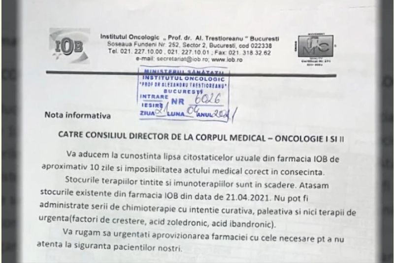 Medicii de la Institutul Oncologic din Capitală cer cu disperare medicamente ca să poată salva în continuare viețile celor care a căror viață atârnă, practic, de un fir de ață.