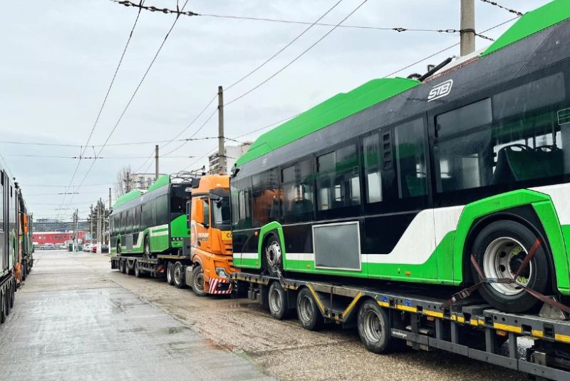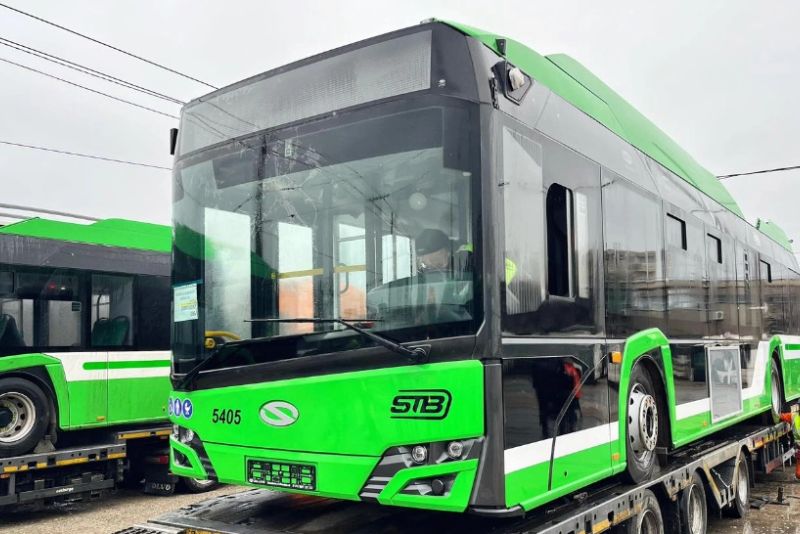 Primele 7 troleibuze Solaris au ajuns în Depoul STB Bujoreni. Mâine dimineață ajung alte 2, iar până pe 24 ianuarie vor fi în total 15 bucăți la București. Primăria a cumpărat 100 de troleibuze noi care vor fi intra în circulație anul acesta. Acestea pot circula până la 20 de kilometri fără să fie conectate la curent.