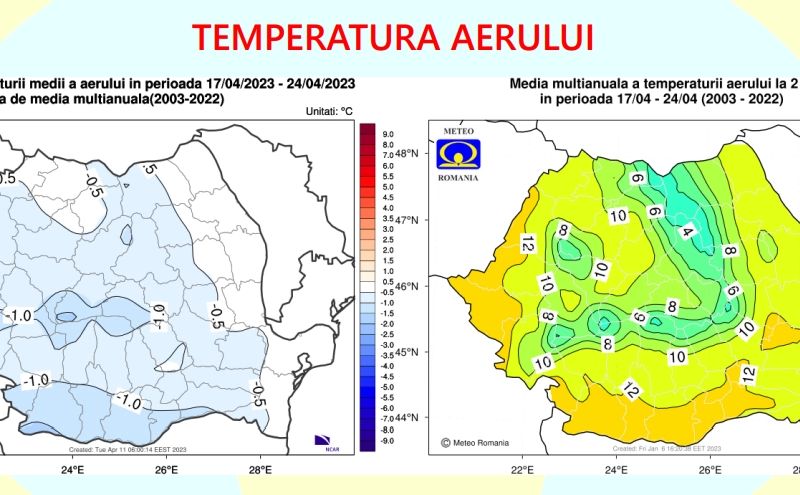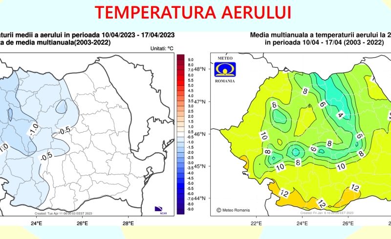 Meteorologii de la Administrația Națională de Meteorologie au anunţat, marţi, prognoza pentru următoarele patru săptămâni, valabilă în intervalul 10.04-8.05 2023. Aflăm, astfel, că că temperaturile vor fi, în general, un pic mai scăzute decât valorile medii înregistrate în această perioadă.