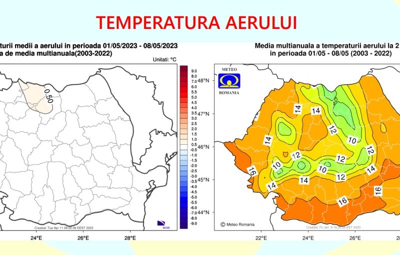 În ultima săptămână din aprilie și de 1 Mai, se așteaptă ca temperaturile să se încadreze în toată țara în jurul valorilor normale pentru această perioadă, respectiv între 8 și 14 grade. Iar în prima săptămână a lunii mai sunt așteptate temperaturi de 10 până la 16 grade. Cel mai cald va fi în sudul și vestul țării, în această perioadă.