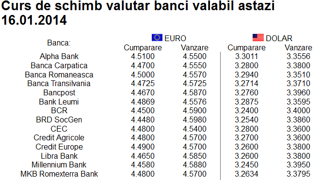 CURS BNR. CURS VALUTAR. Cel mai bun CURS VALUTAR pe piaţă în data de 16 ianuarie este afişat de Alpha Bank şi Banca Carpatica, bănci care afişează cotaţii de 4,5500 lei/euro, respectiv 4,5550 lei-euro, potrivit unui raport al BankNews.ro.