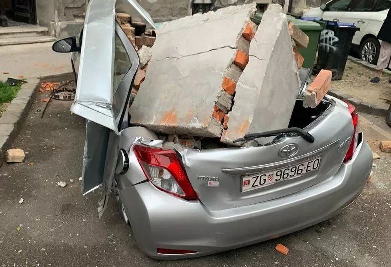 Imaginile de mai jos sunt din Zagreb, unde mai multe clădiri au suferit serioase probleme. Mai multe mașini au fost distruse.