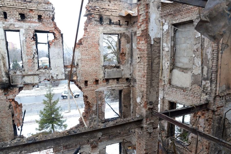 Universitatea din localitate și Inspectoratul Poliției, numeroase blocuri și case au fost distruse în bombardamentele din ultimele zile.