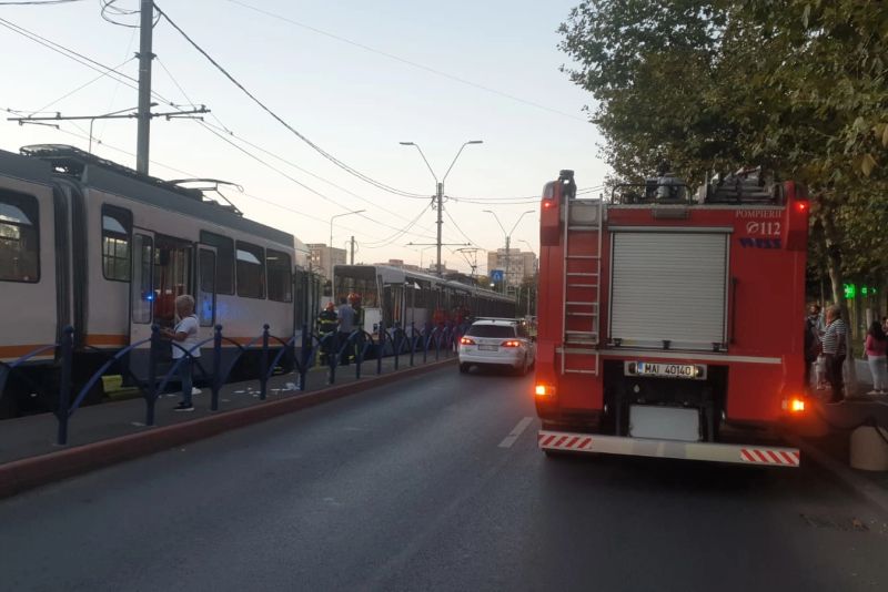 Două tramvaie s-au ciocnit în București, la stația Cimitirul Evreiesc. Trei persoane rănite, dintre care două transportate la spital - FOTO