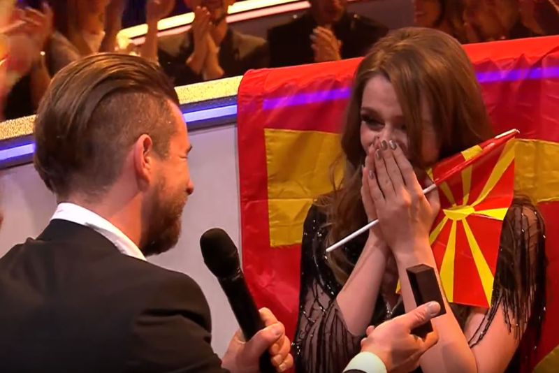 Surpriza uriasa in backstage, in fata a aproximativ 200 de milioane de privitori, 8000 de spectatori in sala, solista care a reprezentat Macedonia a fost ceruta in casatorie. Ea a acceptat cererea in casatorie, fiind si gravida cu actualul ei iubit care ii este si partener pe scena. Imaginile au impresionat pe toata lumea.