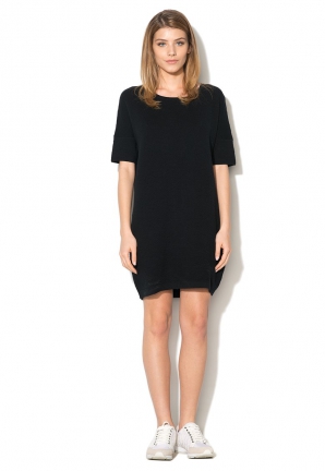 Rochia neagra texturata Understanding are o reducere importanta si este foarte accesibila ca pret. Decolteul este rotund si manecile sunt de lungime medie. Pretul poate fi gasit AICI.