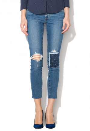 Jeansii skinny de culoare albastru sunt prevazuti cu terminatii nefinisate si beneficiaza de un discount de la Fashion Days. Jeansii sunt elastici pe corp, buzunare clasice, terminatii nefinisate si inchidere fermoar si nasture. Pretul poate fi gasit AICI.