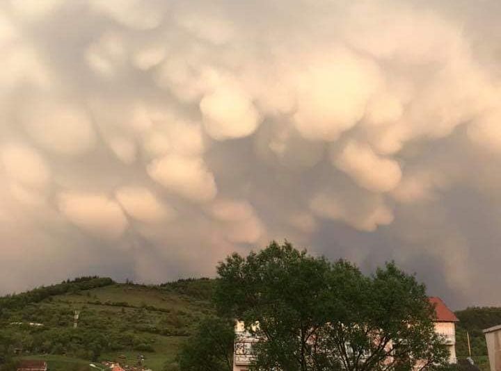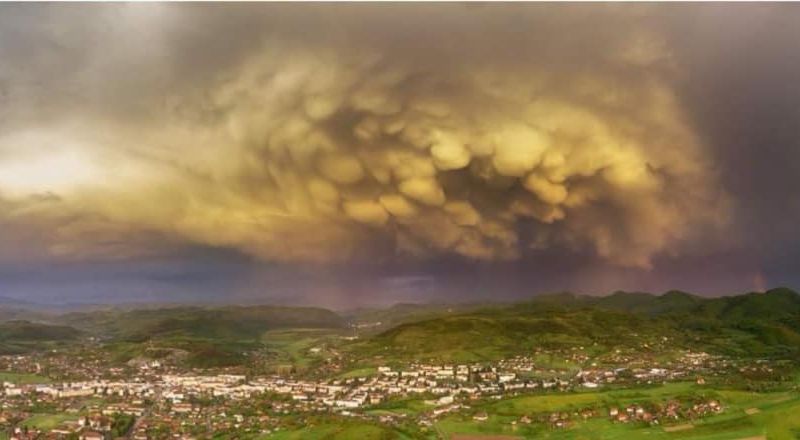 Fenomen meteo impresionant, surprins la Brad, în județul Hunedoara. Nori „mammatus” au acoperit, aseară, cerul orașului.