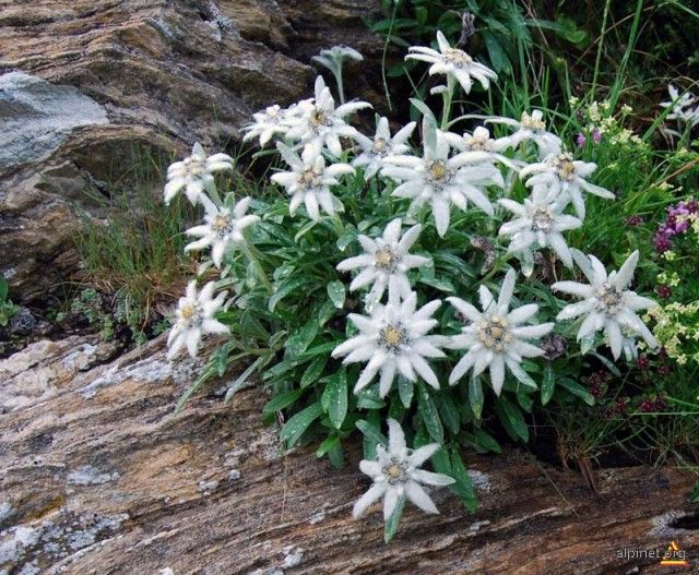 Floarea-de-colţ. Atenţie! Floarea-de-colţ e o floare rară! E protejată prin lege şi ruperea lor este o faptă penală!