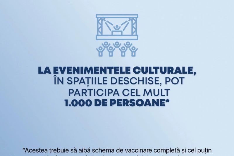 Reamintim că, de la 1 iunie, au intrat în vigoare noi măsuri de relaxare. Românii vor putea face nunți și botezuri, se redeschid cluburile și discotecile, iar suporterii vor putea merge la meciuri. Și copiii vor avea o surpriză, de ziua lor: se vor putea distra, din nou, la locurile de joacă din interior, dar și la piscină. În plus, se renunță la masca de protecție în birourile unde lucrează cel mult 5 persoane, toate vaccinate.