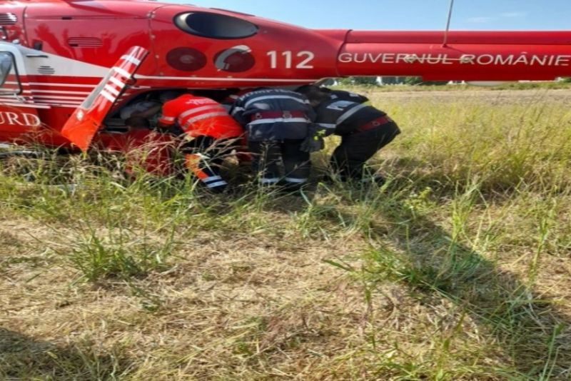 Salvatorii au acționat de urgență pentru extragerea pasagerei din dreapta șoferului, aceasta fiind preluată de elicopterul SMURD și transportată la spital cu multiple traumatisme.