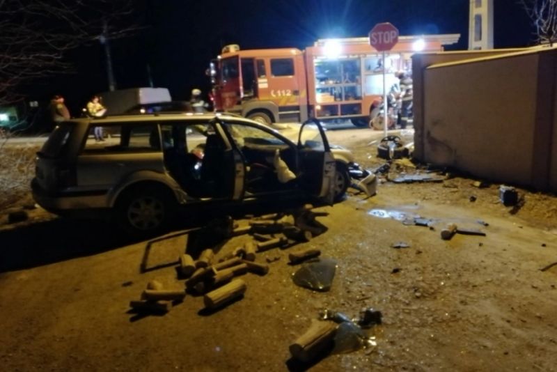 FOTO | La un pas de tragedie. O șoferiță a rămas încarcerată, după s-a izbit cu mașina de un gard din beton