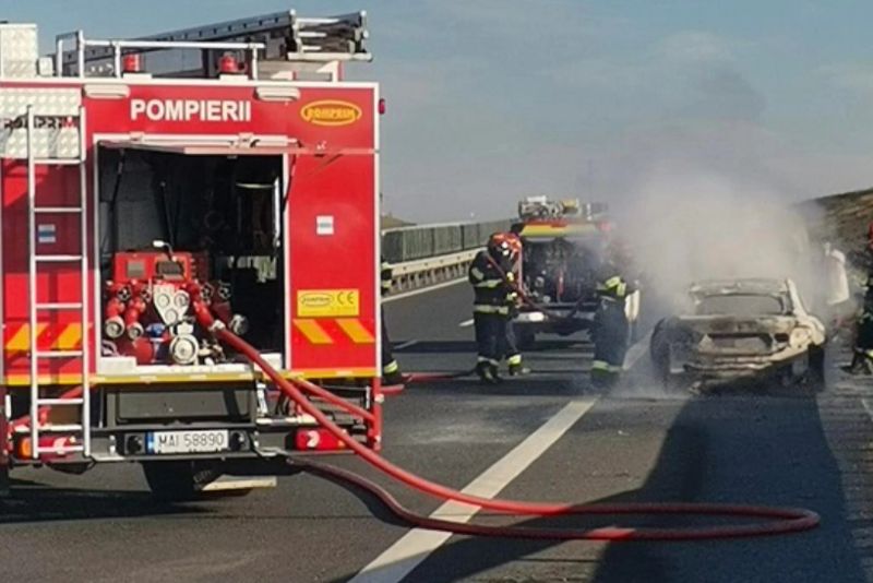Şoferul unei maşini marca BMW care circula sâmbătă pe autostrada, între Timişoara şi Lugoj, a observat la un moment dat că iese fum de sub capota maşinii sale. A oprit, a coborât, apoi focul a cuprins întregul autoturism. Bărbatul a sunat imediat la numărul de urgenţe 112, iar la faţa locului au sosit rapid trei maşini de intervenţie cu 11 pompieri. Flăcările au fost stinse, însă incendiul a fost atât de puternic încât din maşină au mai rămas doar fiarele.