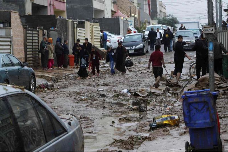 La periferia Erbil, un jurnalist AFP a asistat la torenţi de apă noroioasă care se revărsau pe drumuri. De-a lungul unor căi rutiere, chiar şi autobuze, vehicule grele de marfă şi cisterne au fost luate de ape şi zăceau unele lângă celelalte, unele dintre ele răsturnate.