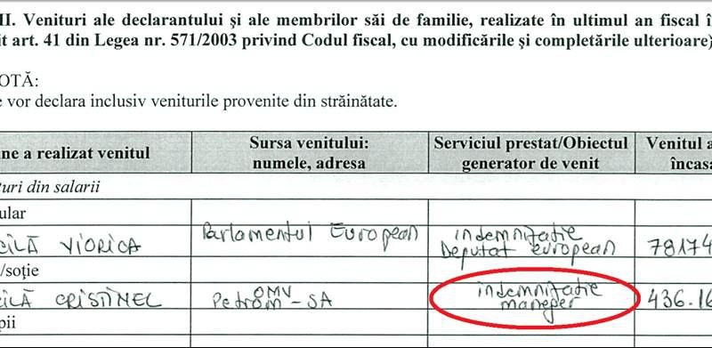 În ultima declarație de avere, Viorica Dăncilă scrie că soțul ei, Cristinel Dăncilă, e "maneger" la OMV Petrom.