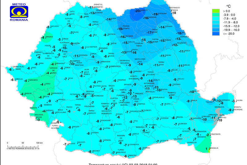 1 martie 2018 a fost cea mai geroasă zi din istoria măsurătorilor pentru luna martie, iar ziua de vineri, 2 martie, se anunță și mai friguroasă. ANM anunță temperaturi minime de -26 de grade Celsius. Capitala şi 29 de judeţe se află sub cod galben și portocaliu de ger.