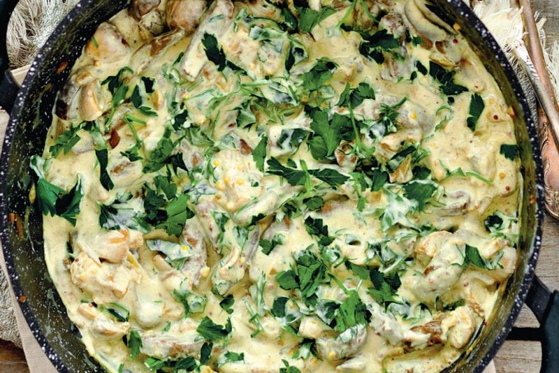 4. Se toarnă apoi peste ciuperci şi se lasă încă 5-10 minute să fiarbă împreună. Se trage de pe foc și se pune piper. Ciulamaua de ciuperci champignon se aduce la masă cu pătrunjel fin tocat, scrie unica.ro.