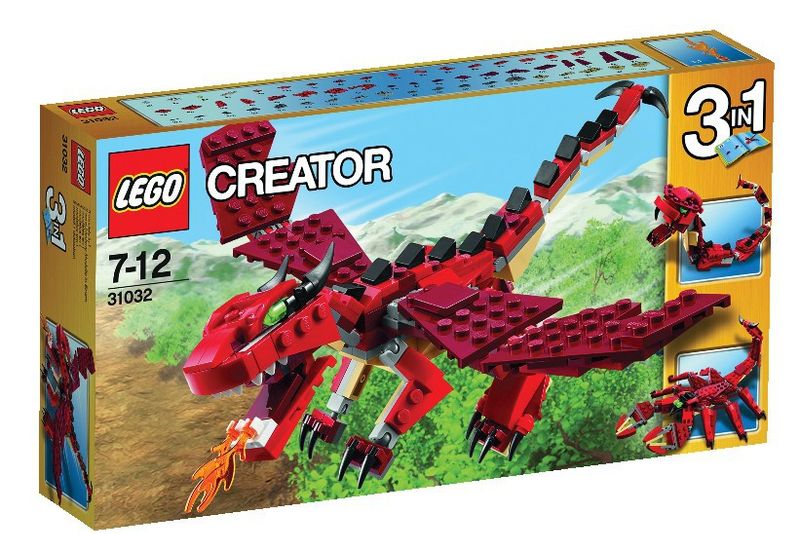 LEGO Creator 3 in 1, Creaturi rosii. Inalta-te spre cer cu infricosatorul dragon cu rasuflare de foc din Creaturile rosii! Acest redutabil model 3 in 1 are o schema clasica de culori, rosu, cafeniu si negru, aripi mari mobile, coada inspaimantatoare lunga, rasuflare de foc, coarne, gheare lungi si ochi de un verde viu. Strabate padurile si planeaza deasupra muntilor imensi! Cand te-ai saturat de constructia de basme legendare, reconstruieste dragonul intr-un sarpe amenintator sau intr-un scorpion cu 6 picioare. Mai multe detalii și întreaga listă de reduceri LEGO găsiți LA ACEST LINK.