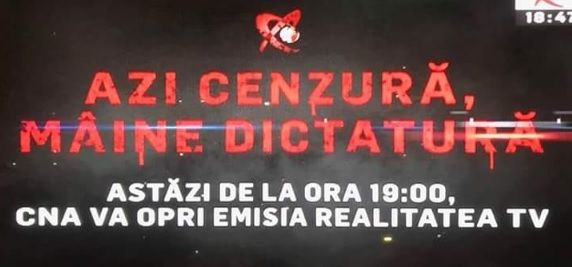 De aceea, vom distribui pe paginile noastre, începând cu ora 18:50, emisia postului de televiziune sancționat abuziv. Aceasta va fi preluată de pe pagina de Facebook a Realității Tv.