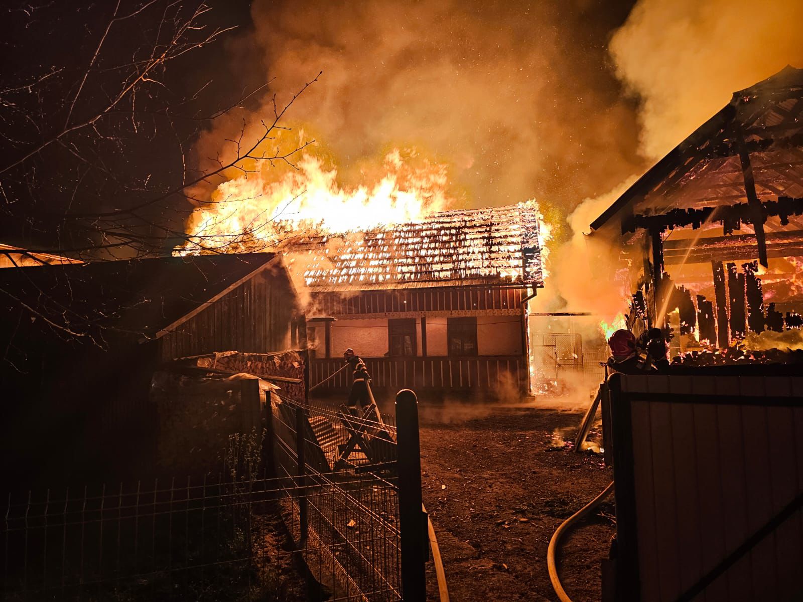 La sosirea echipajelor de urgență, flăcările cuprinseseră deja întreaga casă, dar și alte construcții din aceeași curte, precum adăpostul de animale și un depozit de furaje.