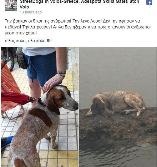 O postare pe Facebook a asocialiţiei care a prelut-o pe Lua anunţă că stăpânii câinelui nu l-au abandonat, ci doar l-au pierdut în timpul incendiului.
