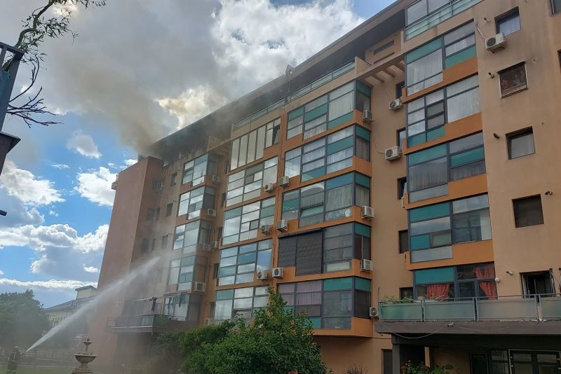 INCENDIU cu degajări mari de fum, lângă Capitală: mansarda unui bloc de locuințe a luat foc - FOTO
