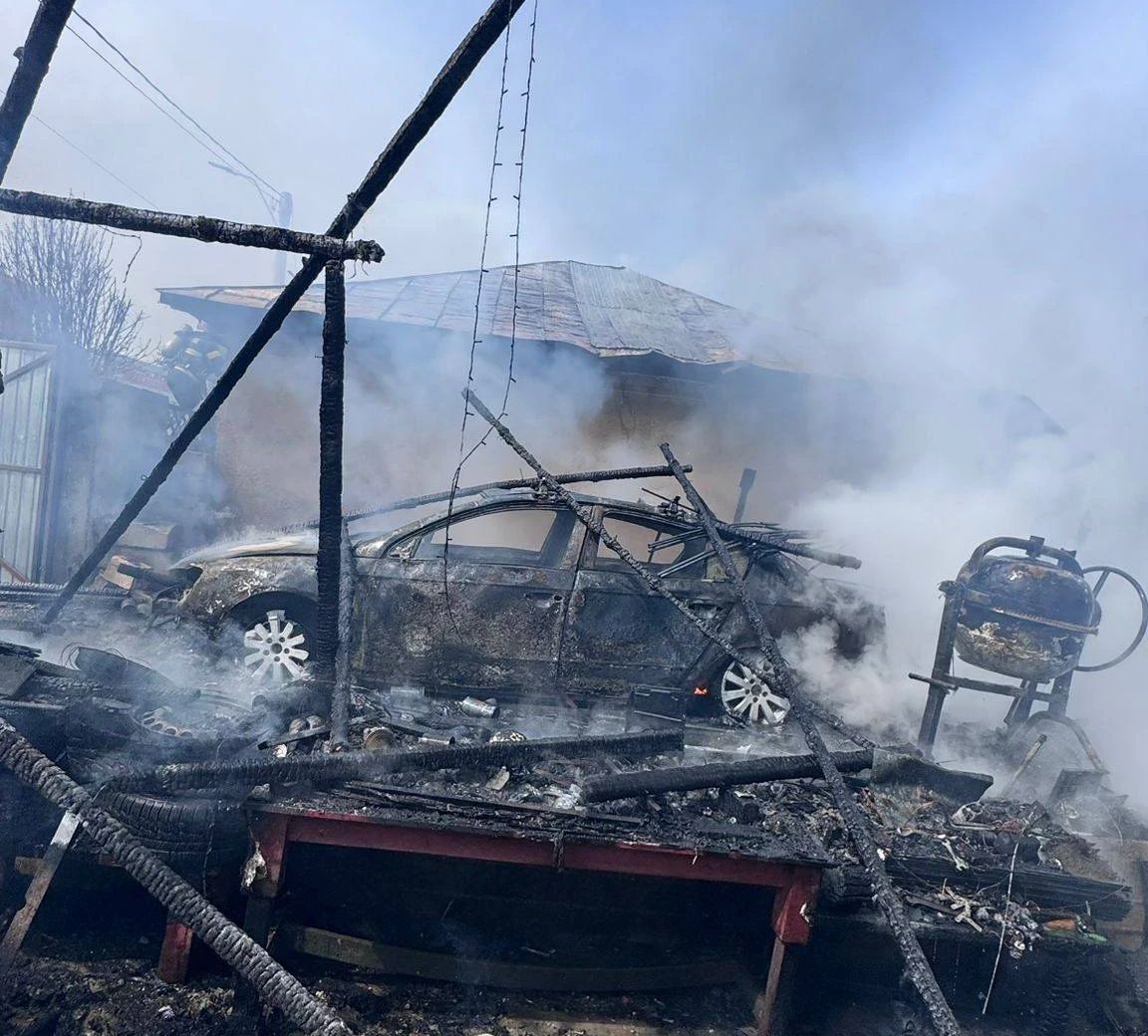 Incendiu violent în județul Giurgiu: un garaj și un autoturism, distruse de flăcări FOTO