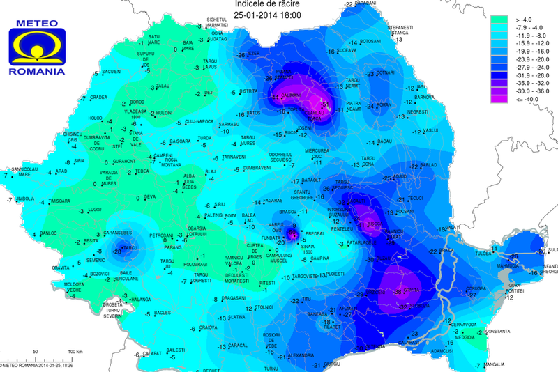 Din cauza vântului puternic, temperatura aerului resimţită de orpul uman a coborât până la valoarea incredibilă de -50 GRADE CELSIUS, la ora 18.00, într-un loc din România.
