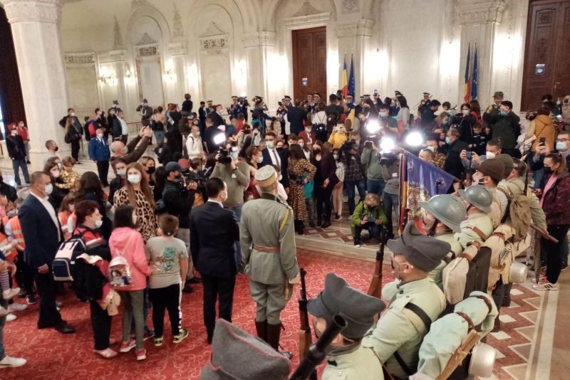 Mii de părinți și-au adus, astăzi, copiii la Parlament. Coada de la intrarea în Casa Poporului a fost de zeci de metri. Cei mici au fost întâmpinați chiar de președintele Camerei Deputaților, Ludovic Orban.
